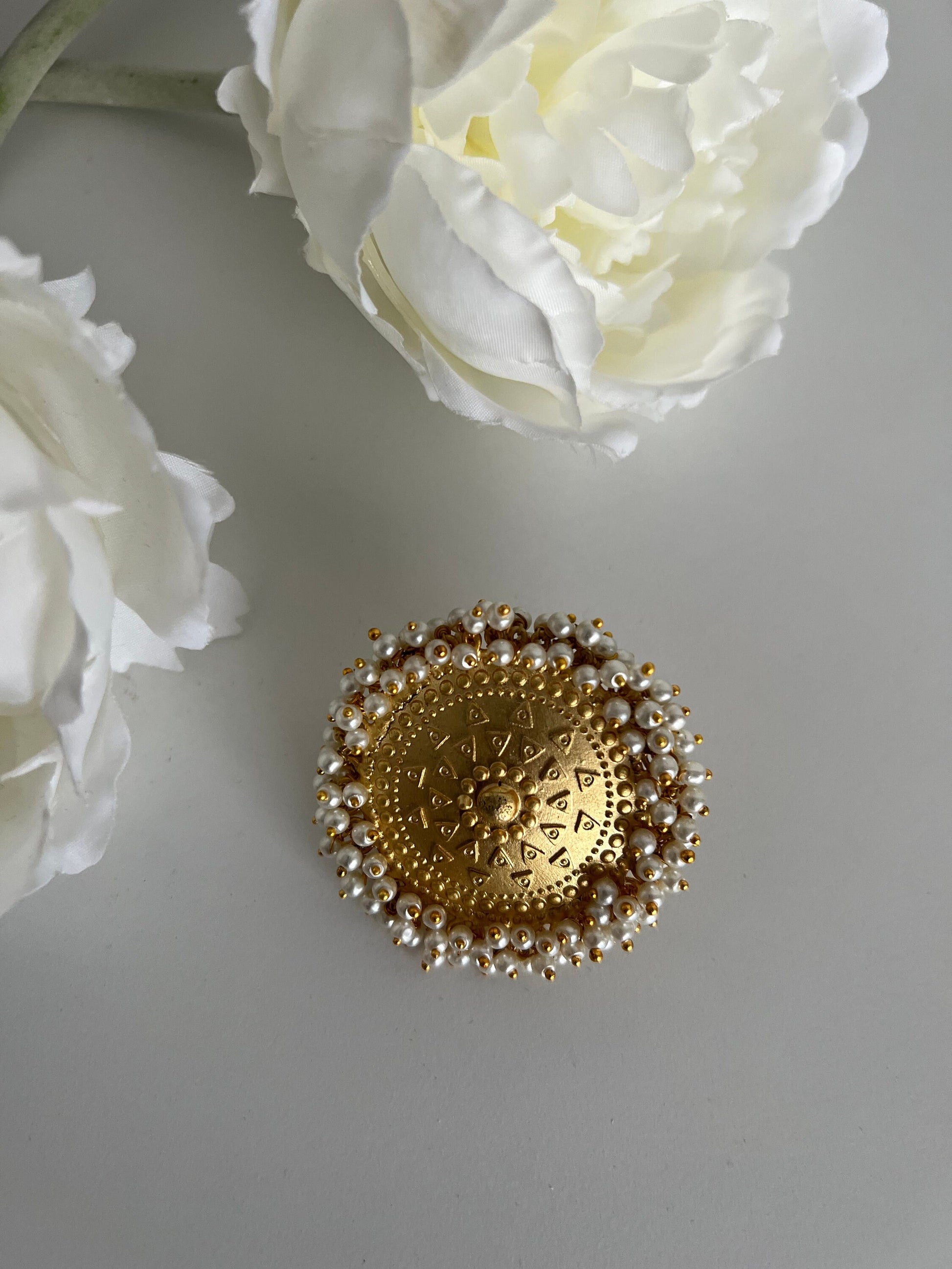 Beautiful matte gold with mofit faux pearl adjustable ring