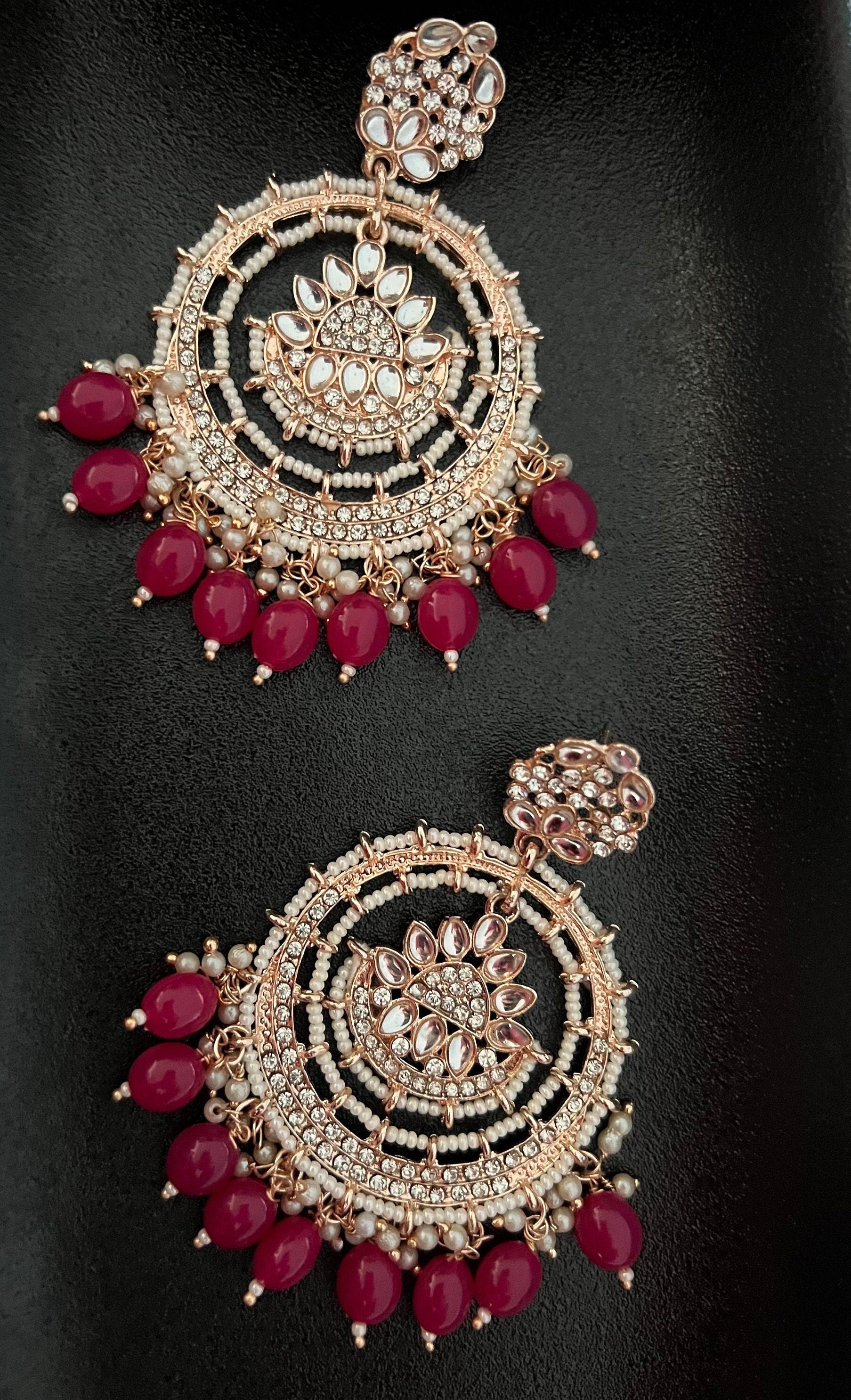 Stunning rose gold with kundan and faux pearl and kundan detailing Chandbali earrings
